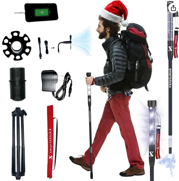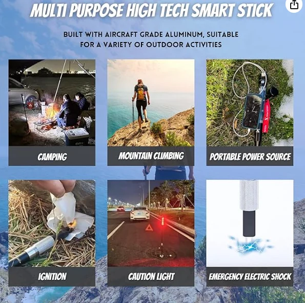 LED -es könnyű túrázás pólus.Premium minőségű többcélú trekking pólus túrázáshoz, túlélési sétabot és összecsukható önvédelmi bot minden veszélyes kültéri tevékenységhez.