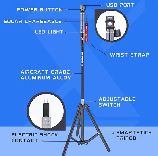 A taktikai túrázó bot könnyen bekapcsolhatja okostelefonját vagy bármely más USB -eszközt a kényelmes USB port segítségével. Soha ne aggódjon az energiabank hordozása miatt, amikor a túlélési túrázó botja van.