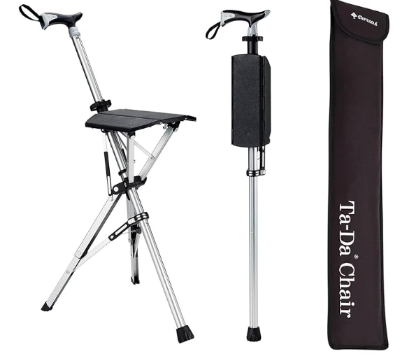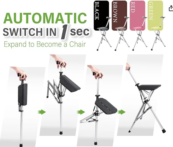 Öreg férfiak Alpenstock Trekking Cane, pihenés és túrázó bot. Ez a formatervezés, amely azonnali túrázási botot egy pillanat alatt székké alakít, egy pillanatra a fáradt lábak és a térd számára nyújtott pihenést.