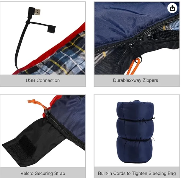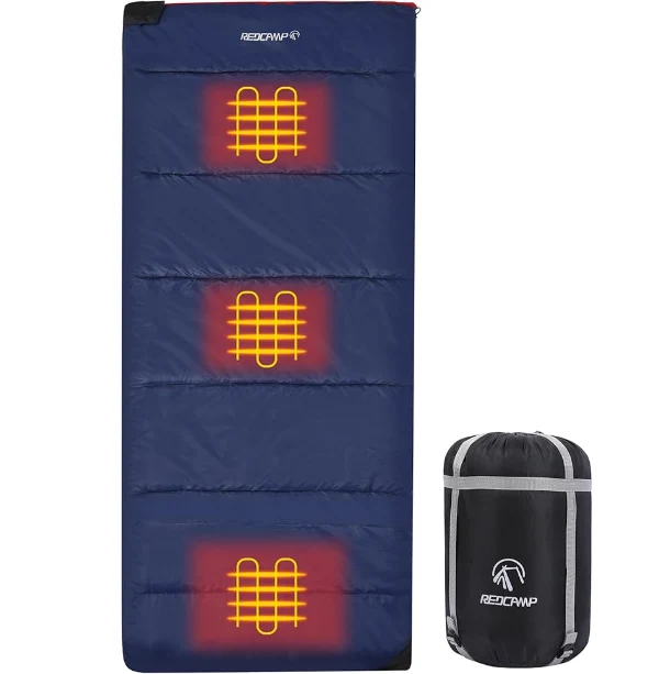 Hordozható, fűtött vízálló hálózsák, egy gomb megnyomásával, ez megkönnyíti a hőmérséklet igényeinek megfelelő beállítását, ami egész éjjel melegséget és kényelmet hoz.