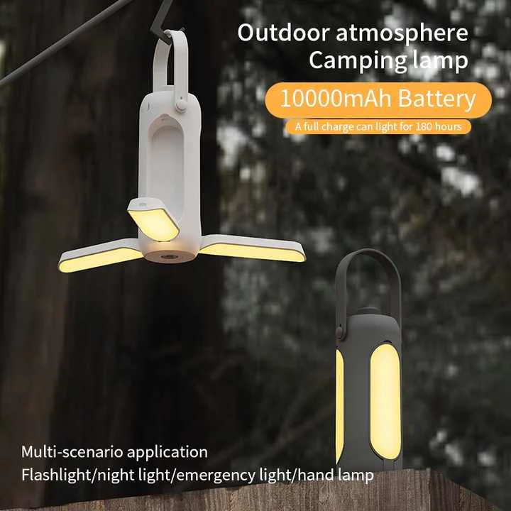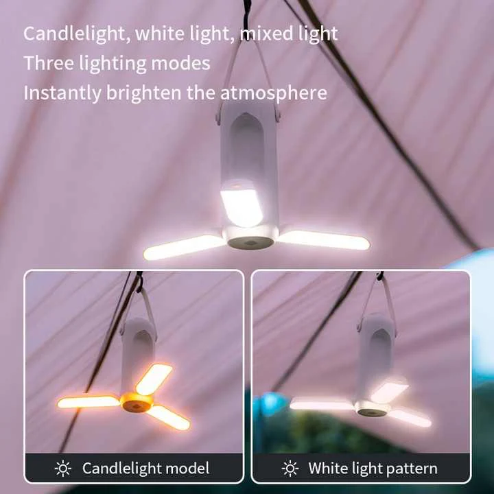Hordozható USB-táborfény, a beépített fogantyút használja a tetején a könnyű súlyozott lámpás hordozásához vagy akasztásához, vagy távolítsa el a diffúzort, és a süllyesztett alsó horoggal fejjel lefelé lógja a lámpást, hogy egy kiterjedtebb területet világítson meg.