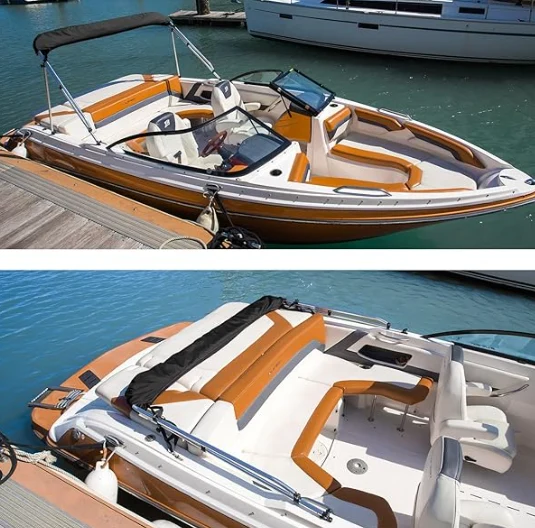 Rozsdamentes hajó, a Bimini Top, amely tengeri 600D -os poliészter -vászonból készült, dupla PU bevonattal, tárolócsizmánk jó védelmet nyújt a napfénytől, a tengervíztől, az esőtől és a portól.